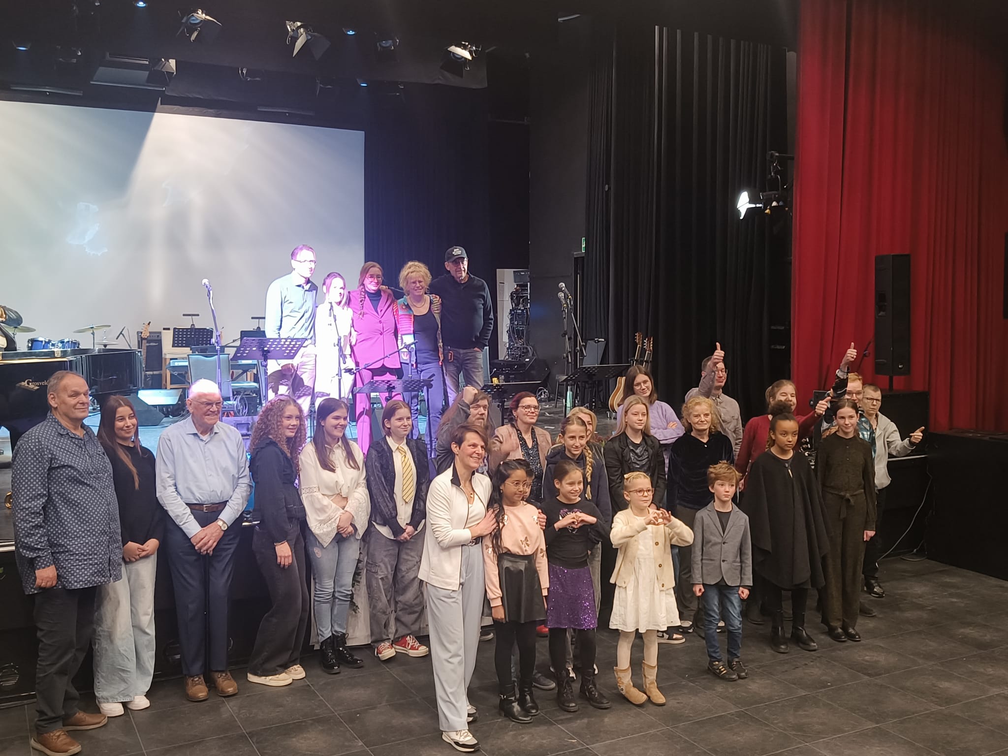 op. Kinderen vanaf 7 jaar tot muzikanten van boven de 70. De zang werd uitgevoerd door Samantha,